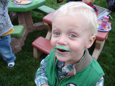 Ben had his wellness checkup the day after his 2nd Birthday...he is still doing great! He was 38 inches tall (still off the charts) and weighed 30.0 lbs (he only gained about 1/2 lb since last visit at 18 months) which is finally showing us he might be tall and lean after all. For a while Greg and I were wondering where he was getting his stockiness from...both of us were bean poles as kids :) He talks pretty much none stop...his newest phrase is Mommy/Daddy watch this! Then he waits for the appropriate response....Wow! or Cool Buddy! If he doesn't get a response he continues to do it until he gets one. He loves Cider Mills...if you ask him if he wants to go he always says...Yeah...goats and donuts! Today he told me he wanted to go bye bye to see the goats and donuts...what a memory! He is doing okay with the transition to the toddler bed...some nights better then others but usually about 1 time a night one of us has to take him back to his own bed and wait for him to go back to sleep. I am hoping this will continue to get easier and soon he will stay in his own room the whole night!